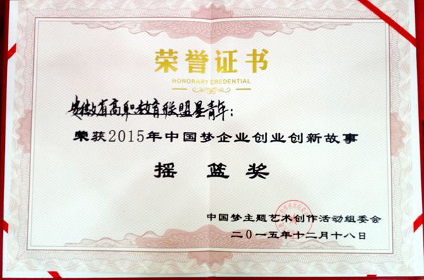 近日,由梦组委会主办,中小微企业联盟协办,唐人汇新三版加速基地承办的2015首届梦“摇篮奖”颁奖典礼,在北京西钓鱼台梦组委会故事创造基地成功举办。由365集团主发起成立的安徽省高等职业院校创新创业联盟星青年创业团队荣获“梦创新创业故事摇篮奖”。