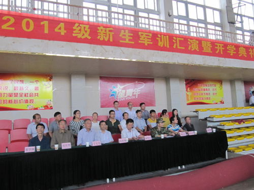 下午3时,21个礼花在空中绽放后,庄严雄壮的国歌声中拉开了2014级新生军训汇演暨开学典礼的序幕。院领导检阅了军训方阵,接受检阅的新生经过军训砺练精神饱满、军姿威严、队列整齐,嘹亮的口号响彻校园上空。