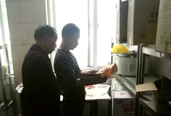 检查组对食堂一、二、三楼每一个窗口的食品、食材及添加剂进行梳篦式的排查,对每一样调味品的生产厂家、生产日期、保质期等仔细查检,对操作间和储藏室卫生环境、消毒设施、冰箱等进行了现场调试,对食堂办公室的资料逐一查阅。
