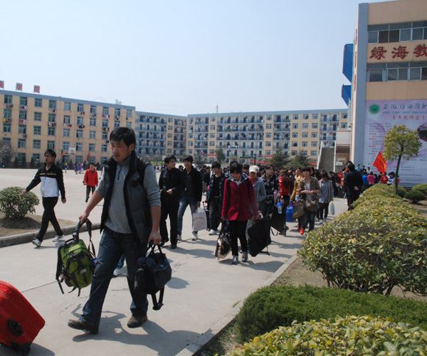 3月28日,我院信息技术系10级广告设计与制作专业、视觉传达设计、装潢艺术设计和动漫设计与制作四个专业全体学生近170人,由教师李玲玲、胡涛、王庆茂、胡静老师和罗勇军辅导员带队,在院体育馆门口篮球场集合,分坐四辆旅游大巴车于28日中午12点出发到安徽皖南屏山、宏村开展写生实训工作。