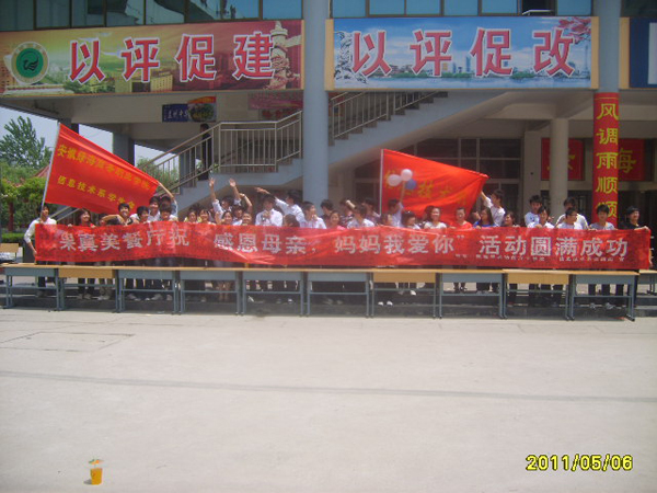 为了倡导“百善孝为先”的孝道文化,推进全社会的和谐发展。 2011年5月6日中午十一点半,由信息系学生会女生部举办的“感恩母亲、妈妈我爱你”活动在我院大食堂门口举行。我系党总支副书记、副主任刑江淮、团总支成员、辅导员和学生代表以及有关处室负责人亲临签名活动现场。