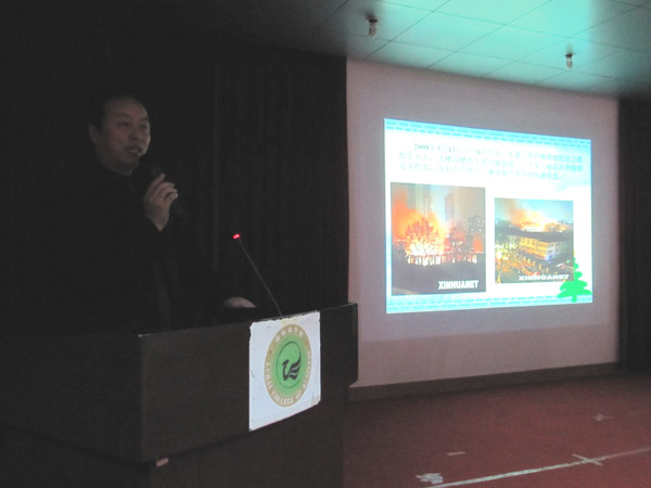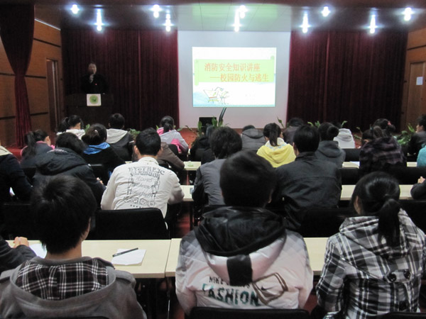 12月8日下午,继教部主任熊名文在学术报告厅为全院寝室长做《消防安全知识——校园安全与逃生》讲座。副院长计承光参加会议并发表讲话,讲座由保卫处负责人韩镭主持。