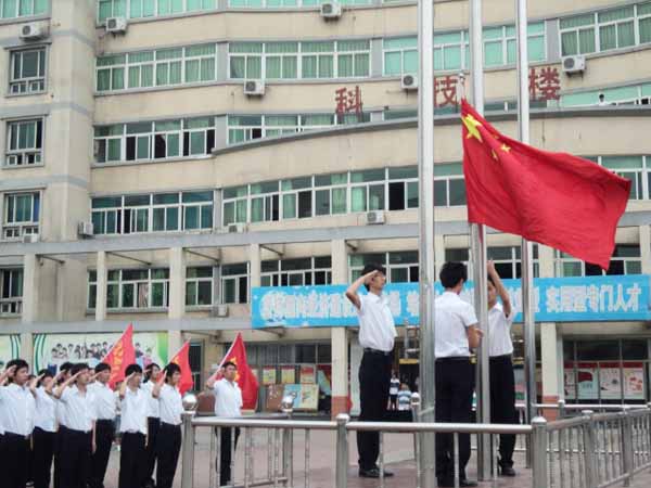 仪式中,国旗班的士气展示震撼了全场,每一个人都精神抖擞,在国旗班班长讲话后,全场进入了严肃庄重的时刻——国旗交接,伟大而神圣的使命从此就落在了新一代国旗班人的肩上。紧接着升旗仪式正式开始,鲜艳的红旗冉冉升起。