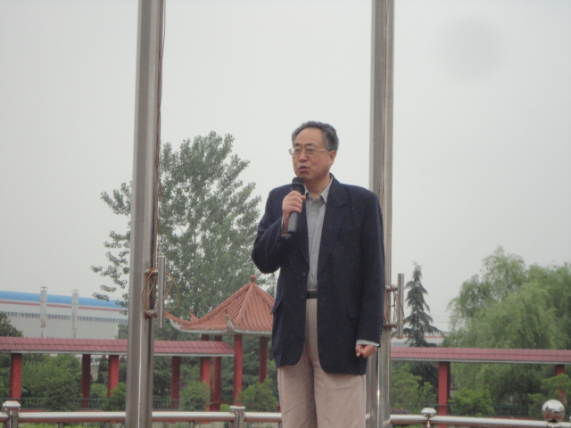 最后,外语系主任刘月华教授作了国旗下讲话。他对师生们冒雨前来参加本次升旗仪式表示真诚的谢意。同时他希望,各位老师同学们能凝心聚力,共同进步,为绿海增光添彩,祖国增光添彩。