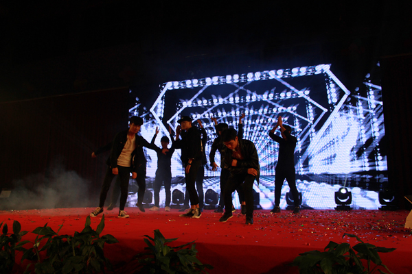 王健华一首高昂嘹亮的《人》,催人奋进的旋律流露出伙食管理委员会取得成绩的骄傲和自豪。李泽亮老师书法《书法流韵》、有一种笔墨飞舞、龙骧豹变、一气呵成的气势,给在场观众展现书法博大精深。《我的心》、《故乡》、《北国之春》师生同台,各个都充满着豪迈的激情与追逐梦想的决心,掀起了会场的高潮。经贸系《舞动人生》,一个个充满激情的表演让我们更多的感受筑梦的巨大成果。校友汪俊杰《故乡》诠释了满怀感恩之情的校友对母校感恩之情。最后,随着《风雨彩虹, 铿锵玫瑰》的大合唱,本次晚会就此画上圆满的句号。
