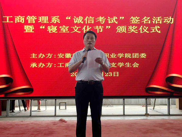 活动上,工商管理系党总支副书记周宗斌就“诚信考试,从你我做起”作了动员。他指出,诚信考试是大学生素质教育的重要组成部分,是365集团加强校风校纪建设的重要指标,是工商管理系学生在考试中必须要遵守的基本准则。他同时对全系学生严肃考风考纪提出了具体要求。