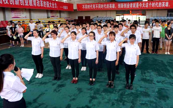学生代表程林带领工商管理系各班级骨干做“诚信考试”郑重宣誓:我们是绿海学子,我们承诺诚信考试。我们将认真努力,积极复习迎考;我们将自觉自律,维护考场纪律;我们将自尊自爱,参与公平竞争;我珍惜我的荣誉,我以我的人格和名誉保证:决不作弊。他们用洪亮的声音展示了工商管理系学生“诚信考试,绝不作弊”的决心。
