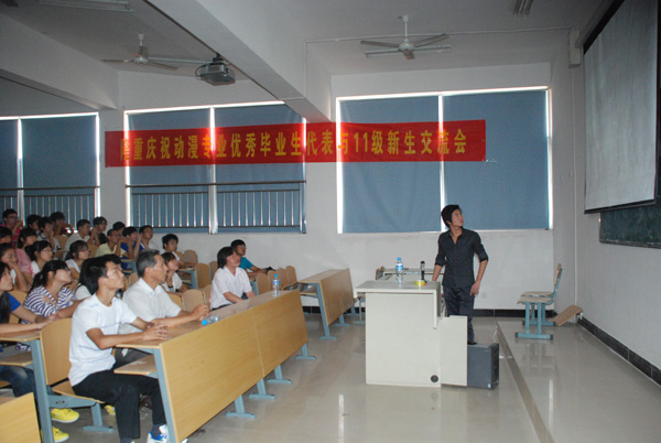 秋高气爽,丹桂飘香,面对面的交流,心与心的倾诉。9月4日上午,在学院第六阶梯教室里,信息技术系动漫设计与制作专业成功举办了优秀毕业生代表与11级新生交流会。我系主任朱金付、党总支副书记邢江淮、动漫教研室主任王庆茂、07级优秀毕业生以及在场101名动漫新生与多名学生家长参加此次交流会。