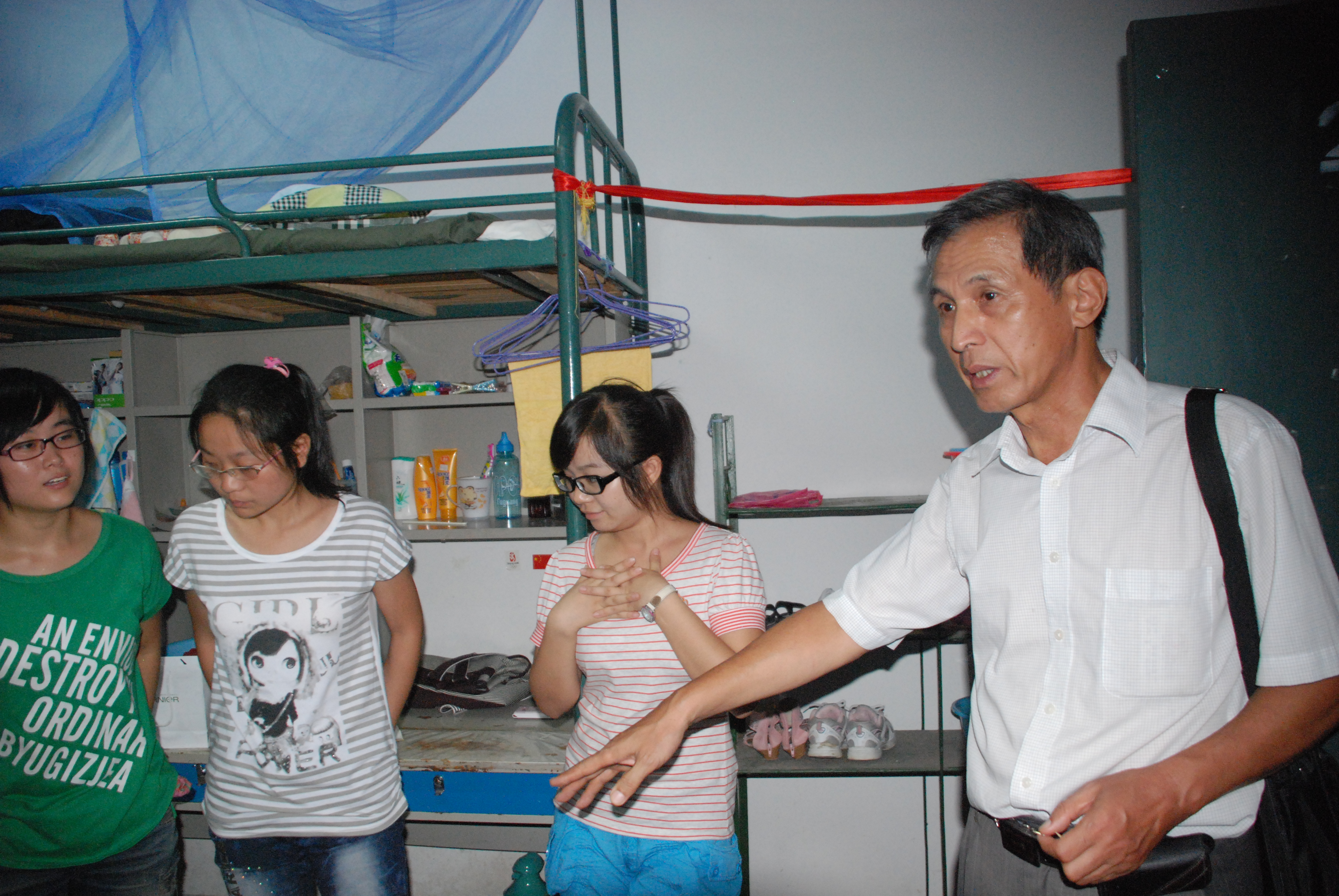 晚间,我系党总支书记邢江淮带领各班辅导员深入宿舍亲切慰问我系新生,并希望学生安排好自己的大学新生活。