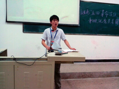 继续教育部刘瑾书记详细地给我们讲述了五四青年运动的相关知识。并指出:作为团的干部,首先要从自身做起,从身边的一点一滴做起,并要求我们自觉遵守团的章程,做一个合格的共青团员。活动中:学生代表洪玉萍宣读入团宣誓,让我们重温入团时的雄心壮志。