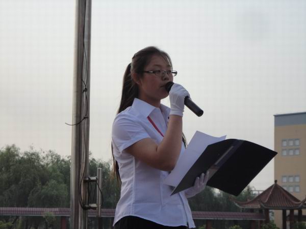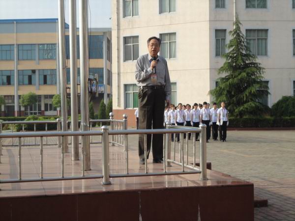 最后,外语系主任刘月华教授在国旗下作了励志讲话。他说,在五四青年节之际,同学们应积极去了解历史,努力发扬伟大的五四爱国精神。