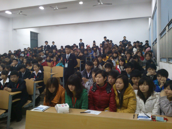 大会在国歌声中有条不紊的进行着,首先,由学生代表宣读学生宣言。之后,学生党支部书记吴丹老师宣读了23位预备党员名单,并对他们给予认可和鼓励。然后,熊名文主任就本学期的工作从教学管理、学生管理等四个方面详细的阐述了,并对本学期的各项工作给予了充分的肯定。