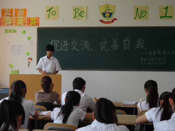 团总支书记张代玉对大家这一年的努力工作及取得成绩表示充分的肯定,同时还指出大家工作中仍然存在的一些问题,张老师希望同学们在以后工作中能尽量处理好学习和工作之间的关系,踏实工作,完善自我。