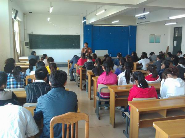 10月18号下午,在科技楼多媒体七举行全体学生迎评动员大会。外语系主任刘月华教授、党总支书记童传富教授、外语系部分老师及各全体同学参加了本次会议,大会由我系团支书记毕科学老师主持,伴着毕老师激情洋溢的讲解及我系学生的积极配合,学生们个个精神振奋,斗志昂扬。童教授给我们作了生动演讲,赢得老师和同学的热烈掌声。