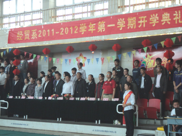 9月22日,经贸系在体育馆二楼隆重举行了2011级新生开学典礼。