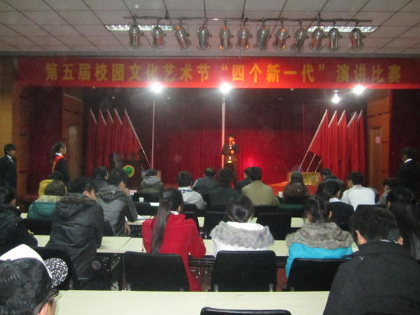 12月1日晚,由演讲与口才协会主办的第五届校园文化艺术节“四个新一代”主题演讲比赛在学院报告厅隆重举行,此次比赛旨在启发学生寻找身边的道德楷模,记录身边的先进典型。