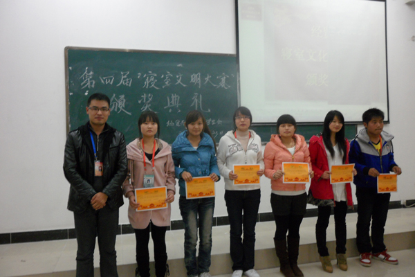 2011年11月29日中午12点整,经贸系“寝室文明”大赛颁奖仪式在阶梯教室五隆重举行。出席本次颁奖仪式的有经贸系副主任戴昭慰、党总支副书记高明和行政秘书刘延军。