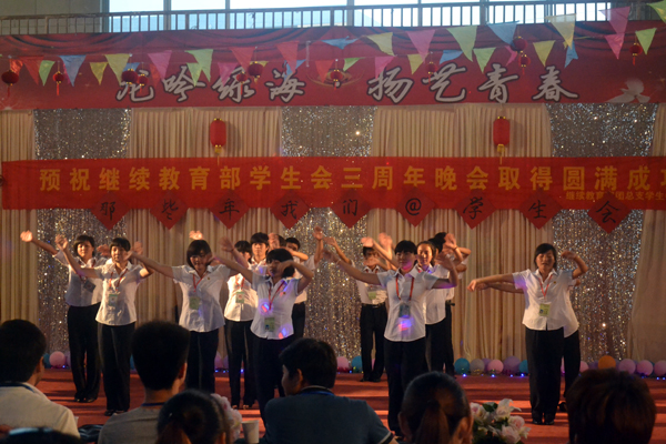 6月7日晚,继续教育部在体育馆二楼举行学生会三周年庆典晚会。继教部全体师生、兄弟系部及协会的学生参加了晚会。