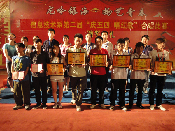 为了进一步弘扬“五四”精神,更好地对学生进行爱国主义精神教育。5月17日晚,信息技术系在体育馆二楼举办了第二届“庆五四 唱红歌”红歌大合唱比赛。出席本次活动的领导和嘉宾有学院副董事长、副院长陈孝江,信息技术系主任朱金付,保卫处副处长程光胜,学生处副处长钱勇,院团委副书记孙业萍及信息技术系全体老师。