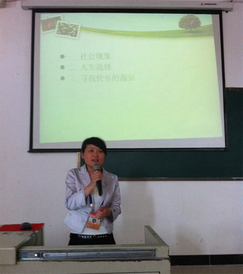 刘应群老师以《今天,你快乐吗》为演讲主题,告诫大学生要培养良好的心态,勇敢的面对困难,积极进取,创造出属于自己的精彩大学生活。现场气氛热烈,大家对刘老师的精彩演讲不时的报以热烈的掌声。
