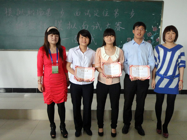 大赛主要围绕蓝蓝水业企业进校园招聘员工进行的,参赛选手们信心满怀,镇定自如地阐述了自己对所应聘职位的了解,并对评委们提出的招聘问题应答自如,引起了台下同学们的阵阵掌声。他们的临场应变能力叫人赞不绝口,尤其是面对“多对一”的压力面试时,更能坦然相对,从容应付,毫不慌乱。最后,经过一个半小时的激烈竞争会电c101班洪玉萍获得一等奖,会电c101班周晓丽、吴芳香获得二等奖,会电c102班高正贵、会电c101班邬丽和刘雅萍获得三等奖,曾春燕获得最佳风采奖、许丹丹获得最佳潜力奖。