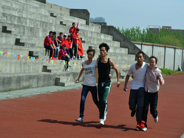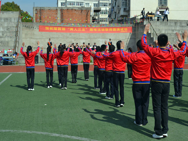 上午9点,阳光明媚,院学生会以及各系部学生代表有序上场。继教部学生会带来了充满阳光活力的开场舞“感恩的心”、“向前冲”。继教部学生会主席高正贵宣布“两人三足”趣味游戏活动正式开始。