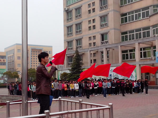 伴随初升的太阳,国旗在庄严的国歌中冉冉升起。高亢弘亮的学生宣言、精彩生动的学生代表发言,彰显出当代大学生应励志发奋图强,争做一个对社会、有贡献的人。