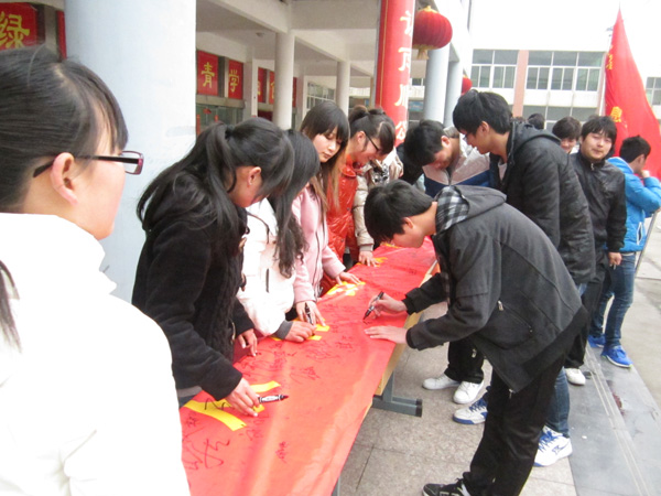 本次活动得到了广大师生的积极响应,同学们踊跃参与并在横幅上签下自己的名字,通过此次活动的开展,讲文明语、做文明事的风气在校园内蔚然成风。