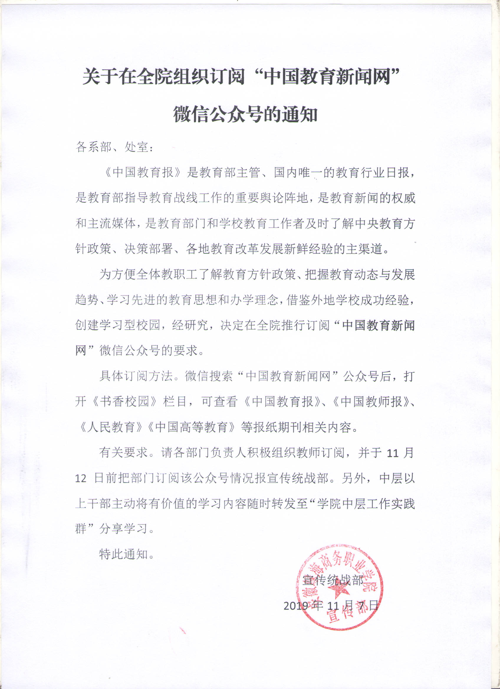 关于在全院组织订阅“教育新闻网”微信公众号的通知