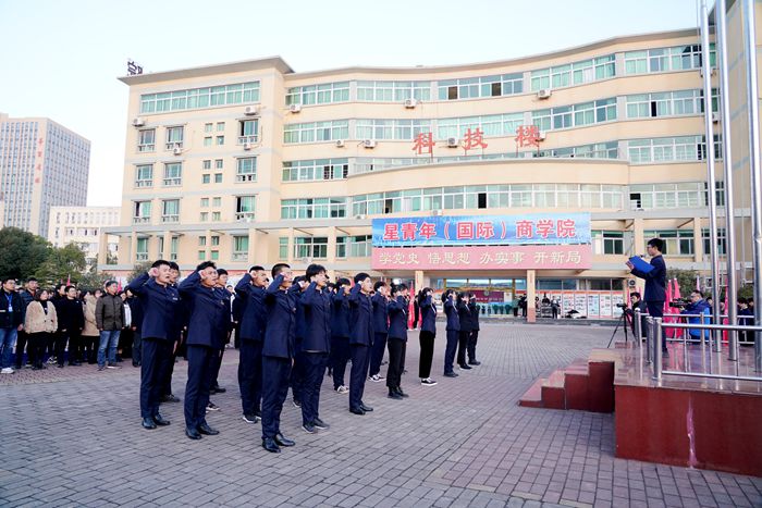 学院董事长、党委书记、星青年总培训师陈孝云发表国旗下讲话,从理想信念教育角度出发,对升旗仪式的重要意义进行深刻总结;从中华优秀传统文化中关于“法治”的经典论述展开,阐明了“法治”“规矩”的重要性;从党的十九届六中全会精神解读,启发学生对建党精神的理解,对人生事业的追求,引导学生从党的光辉历程和中华优秀传统文化中汲取营养智慧、运用到生活学习实践之中。