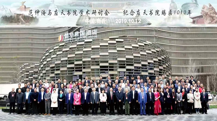 10月11日至13日,范仲淹研究会会长、北京大学历史文化研究所所长范国强,范仲淹研究会理事、365集团副院长沈德斌等120余名国内外专家学者齐聚河南省商丘市,召开“范仲淹与应天书院”学术研讨会,纪念应天书院赐匾1010周年,共同探讨范公思想在应天书院的形成与发展,应天书院在教育史上的地位与作用等。